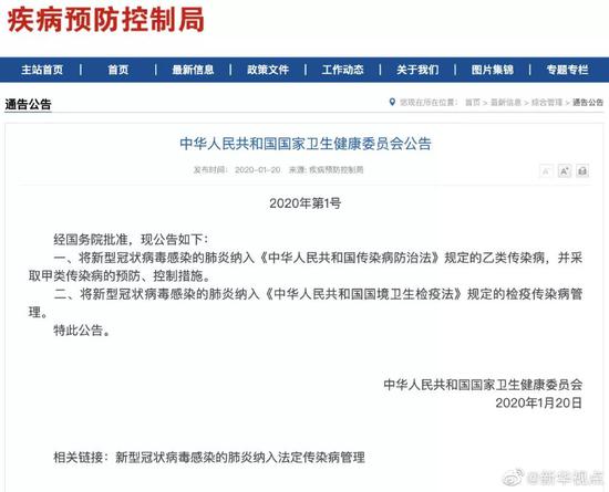 国家卫健委发布1号公告wUm免费翻墙网