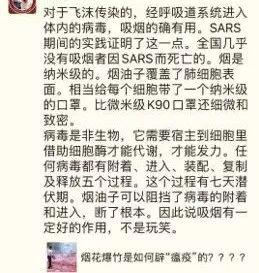 这是一条非典时期就开始流行的谣言,事实上,吸烟不仅不能预防病毒感染,还会降低身体抵抗力;吸烟时,手反复触碰口鼻,病毒反而可能因此进入身体;吸烟时不能带口罩,会因此降低对自己的保护。 谣言2:“室内煮醋能杀灭细菌”wUm免费翻墙网
