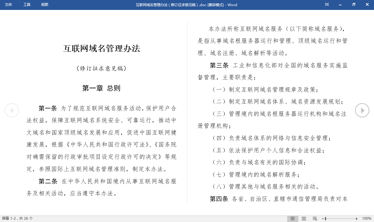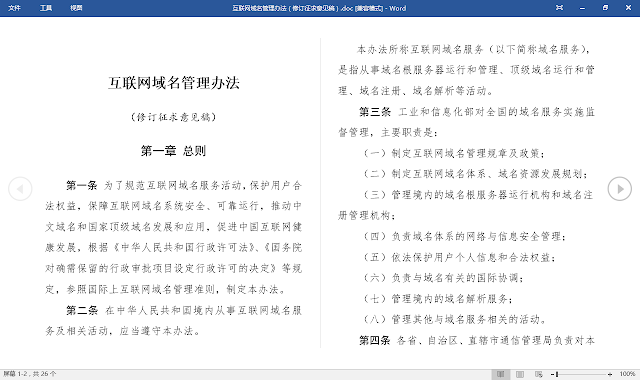 互联网域名管理办法(推民评论稿): https://docs.google.com/document/d/1Ki92mkNNFdEgXgM0M_aMRUK2UxIWJrTWMjvdHn-XziQ/edit?usp=sharing