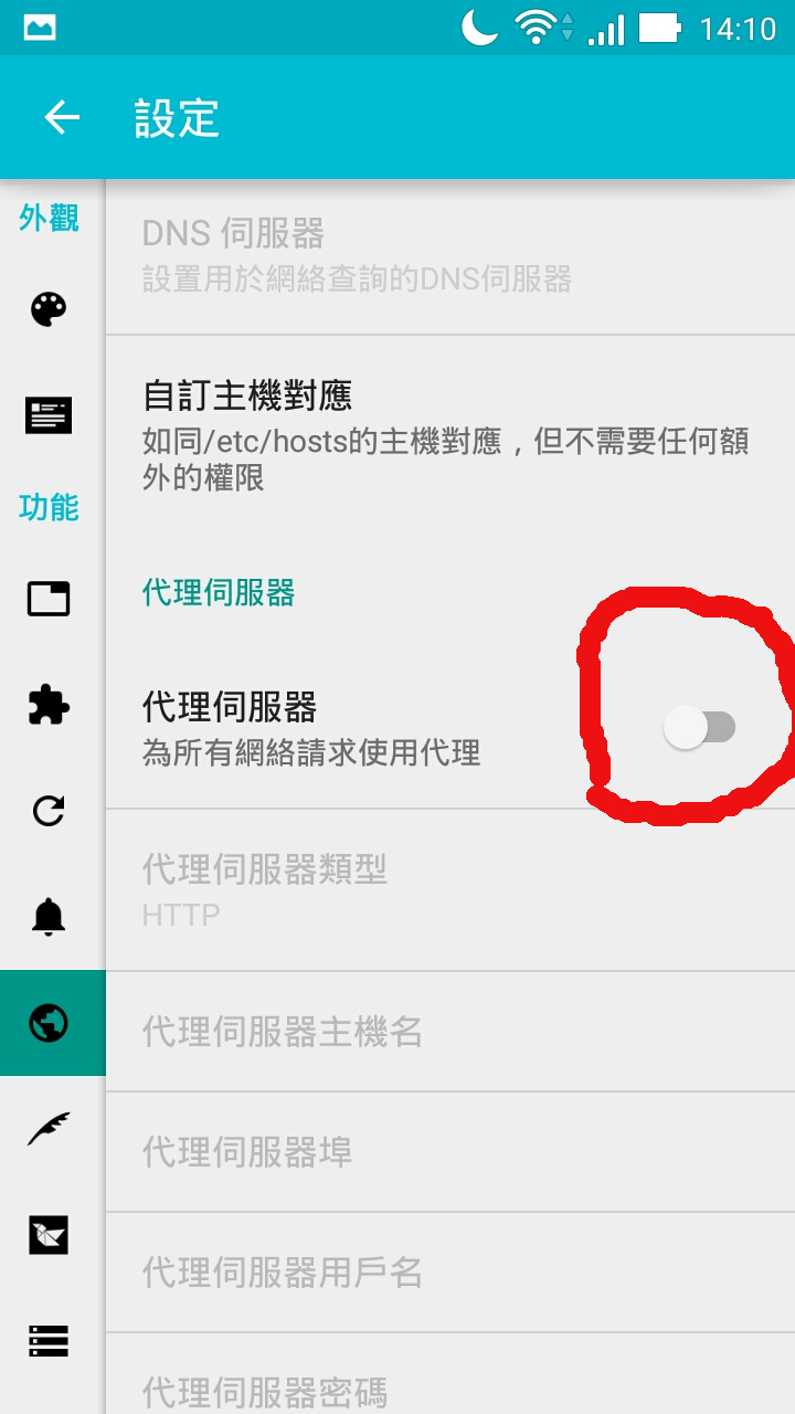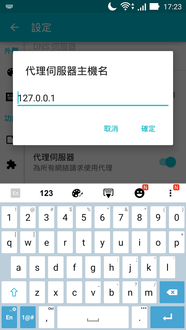 選取HTTP代理,選取『代理伺服器主機名』,填入127.0.0.1