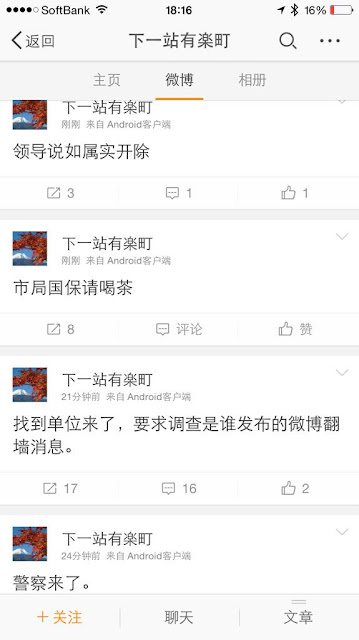 墙内网友声称发布“微博翻墙消息”遭喝茶