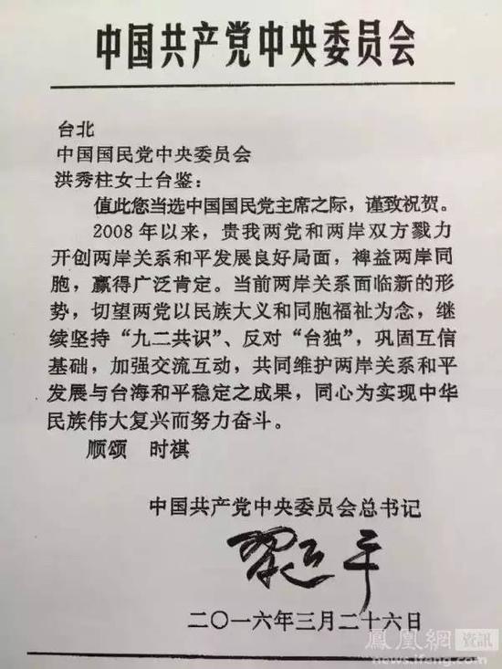 只不过这封贺电和以往拍给马英九、朱立伦、洪秀柱等历届国民党领导人的贺电中,在行文中有一些细微的差距;rCn免费翻墙网