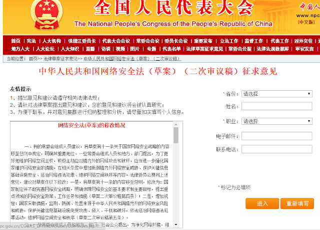 全国人大常委会公布了网络安全法草案二次审议稿,征求公众意见,征求意见截止日期2016年8月4日。相比去年公布的网络安全法草案, 二次审议稿加入了大量如何惩罚的内容,从第五十七条到第七十一条,全部是关于对违反规定者进行严惩的细化条款,其中包括如果不记录用户的实名信息,网站将 面临关闭和五十万元以下罚款。此外二次审议稿强调要将信息储存在中国境内的服务器上,要求执行官方制定的安全标准。 值得注意的二次审议稿条款包括: